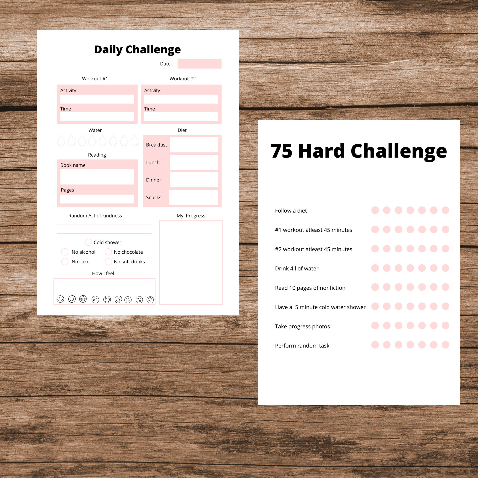 Template 75 Hard Challenge Checklist Printable Free – The growing interest in goal-setting and self-improvement has driven demand for specialized printable templates that incorporate calendar features. Printable medical charts, prescription logs, and patient intake forms streamline administrative processes and improve organization in clinics and hospitals. For example, a family calendar template might include color-coded sections for each member, making it easy to see who has appointments, sports practices, or social events. Whether it’s for personal use or a business giveaway, digital printing allows for vibrant colors, intricate details, and sharp text, making the printable calendars not just functional, but also visually striking. These might include calendars, planners, activity sheets, educational materials, party invitations, wall art, or even business cards. Seasonal themes have become another popular trend in printable calendar designs. Want to create a calendar specifically for your business or organization? No problem! Printable templates can be customized to incorporate your company's branding, logos, and messaging. Their versatility, accessibility, and affordability make them a valuable asset for individuals and organizations alike. These calendars are not only functional but also visually appealing, turning a mundane task like planning into an enjoyable activity. Another area where printables and templates are making a significant impact is the nonprofit and charity sector.